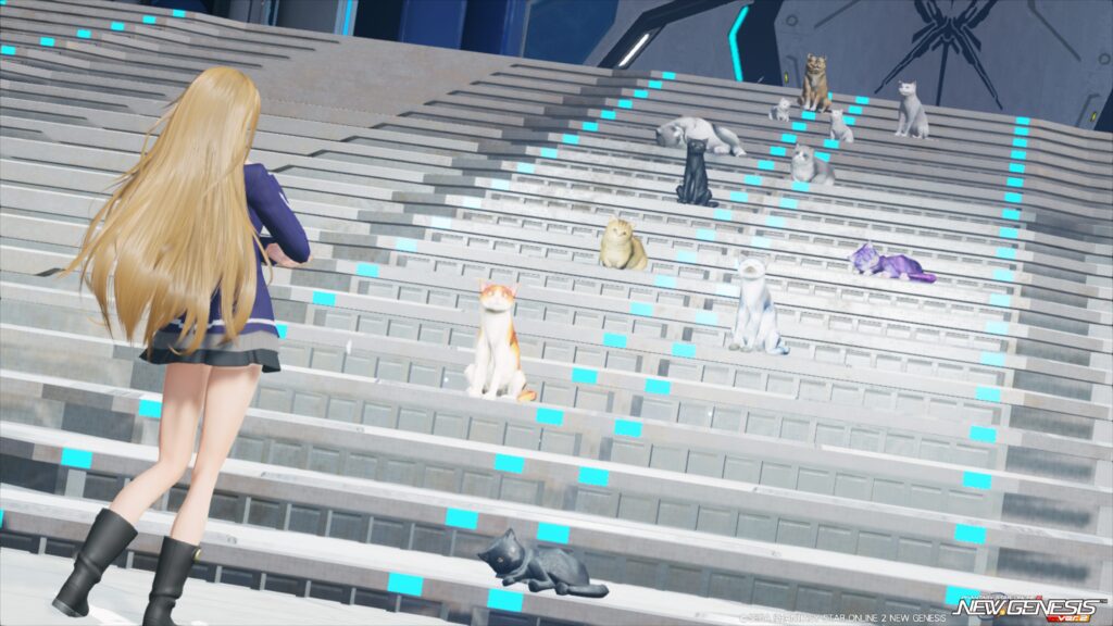 4月1日(水)から普段はセントラルシティの目立たない場所にいる猫達がショップエリアの店の前やタワー入口前の階段とかあちこちに出現しています。4月22日(水)からの5周年イベント「超・星譚祭 ~『NGS』5th ANNIVERSARY」開始後もまだいます。